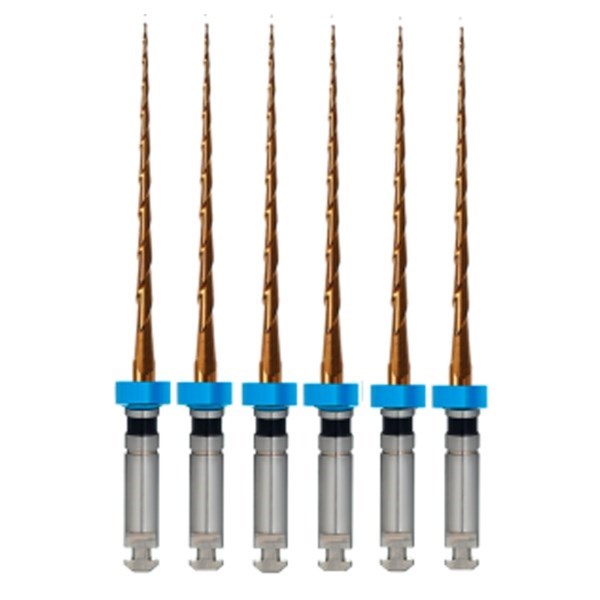 Инструмент MultiTaper Files Gold позволяет одновременно производить: удаление пульпы, прохождение участка, формирование канала. Тем самым уменьшает время процедуры и повышает эффективность. Файл прошел дополнительную термическую обработку, которая делает инструмент более гибким, позволяет отработать большее количество циклов и снижает нагрузку на металл.