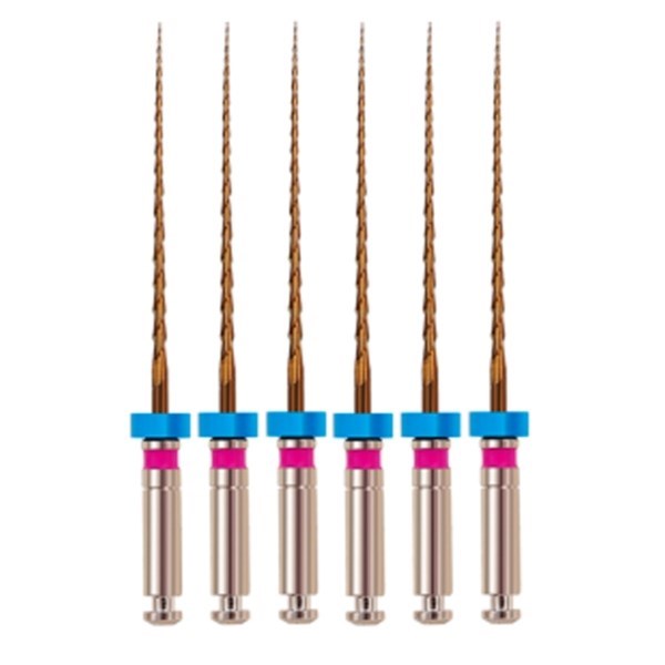 Инструмент MultiTaper Files Gold позволяет одновременно производить: удаление пульпы, прохождение участка, формирование канала. Тем самым уменьшает время процедуры и повышает эффективность. Файл прошел дополнительную термическую обработку, которая делает инструмент более гибким, позволяет отработать большее количество циклов и снижает нагрузку на металл.