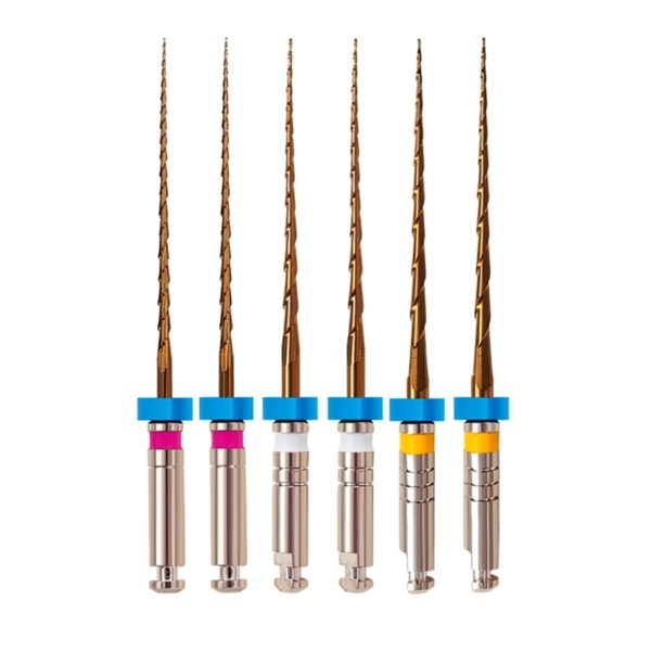 Инструмент MultiTaper Files Gold позволяет одновременно производить: удаление пульпы, прохождение участка, формирование канала. Тем самым уменьшает время процедуры и повышает эффективность. Файл прошел дополнительную термическую обработку, которая делает инструмент более гибким, позволяет отработать большее количество циклов и снижает нагрузку на металл.