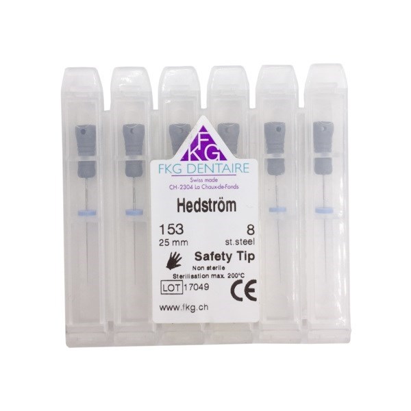 Ручные эндодонтические файлы изготовлены из стали или NiTi стандартных ISO размеров от 6 до 40, имеют неактивный безопасный кончик, который является эксклюзивной разработкой компании FKG, и эргономичную ручку – (SMG). Эргономичную ручку удобнее держать, благодаря увеличенному диаметру. На конце ручки расположен 8-сегментный индикатор кратности использования. После каждого применения на один сегмент наносится засечка, то есть фиксируется информация о количестве циклов использования и стерилизации. Когда все сегменты помечены засечками, инструмент необходимо утилизировать.