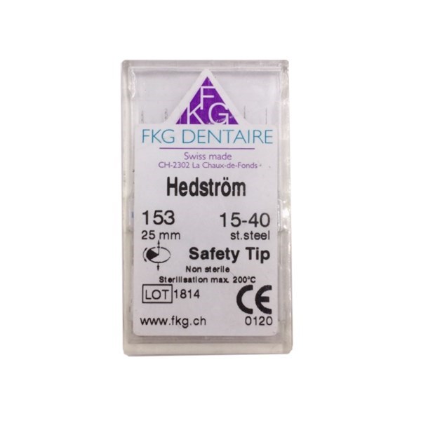 Ручные эндодонтические файлы изготовлены из стали или NiTi стандартных ISO размеров от 6 до 40, имеют неактивный безопасный кончик, который является эксклюзивной разработкой компании FKG, и эргономичную ручку – (SMG). Эргономичную ручку удобнее держать, благодаря увеличенному диаметру. На конце ручки расположен 8-сегментный индикатор кратности использования. После каждого применения на один сегмент наносится засечка, то есть фиксируется информация о количестве циклов использования и стерилизации. Когда все сегменты помечены засечками, инструмент необходимо утилизировать.