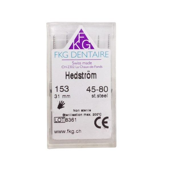 Ручные эндодонтические файлы изготовлены из стали или NiTi стандартных ISO размеров от 6 до 40, имеют неактивный безопасный кончик, который является эксклюзивной разработкой компании FKG, и эргономичную ручку – (SMG). Эргономичную ручку удобнее держать, благодаря увеличенному диаметру. На конце ручки расположен 8-сегментный индикатор кратности использования. После каждого применения на один сегмент наносится засечка, то есть фиксируется информация о количестве циклов использования и стерилизации. Когда все сегменты помечены засечками, инструмент необходимо утилизировать.