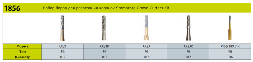 Набор боров для разрезания коронок Stomatorg Crown Cutters Kit 1856 (5 инструментов) в пластиковой упаковке