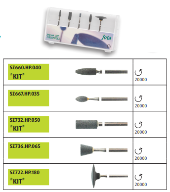 Набор для оксида циркония Jota Kit Zirconflex 1322 Kit (5 инструментов): SZ732.HP.050, SZ638.HP.025, SZ652R.HP.035, SZ660.HP.040, SZ722.HP.180.