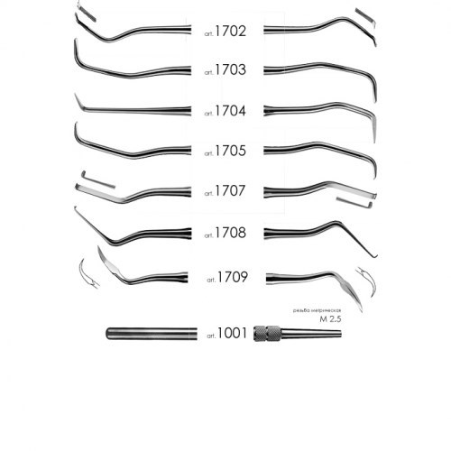 Описание: Набор для снятия зубных отложений 8 инстр.(1506,1702,1703,1704,1705,1707,1708,1709) FABRI 1700Набор Гладилок FABRI 1700.