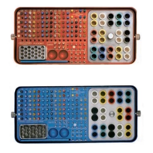 Включает в себя 6 инструментов Gates, 44 K-Flexofiles длиной 21 и 25 мм, 41 Hedstroem длиной 21 и 25 мм, 8 фингер-спредеров длиной 21 и 25 мм (по 4), 10 пульпоэкстракторов Spiro Colorinox, 12 лентуло длиной 17, 21 и 25 мм (по 4), 1 линейка для гуттаперч.штифтов, 1 контейнер для гуттаперч. и бумаж.штифтов, 1 диспенсер для силиконовых стопперов. Размеры 216 мм х 102 мм.