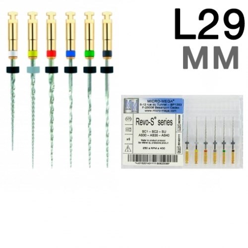 Описание: Набор файлов REVO-S Assortiment: L29 мм, (6 шт.). SC1-SC2-SU-AS30-AS35-AS40,L29 20143112 (NiTi). Micro-MegaREVO-S – система никель-титановых инструментов для первичного эндодонтического лечения.