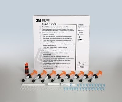 - Универсальный наногибридный реставрационный материал Filtek Z550, 8 шприцев по 4 г, оттенки A1, А2, А3, А3.5, B3, C2, D3, OA2;