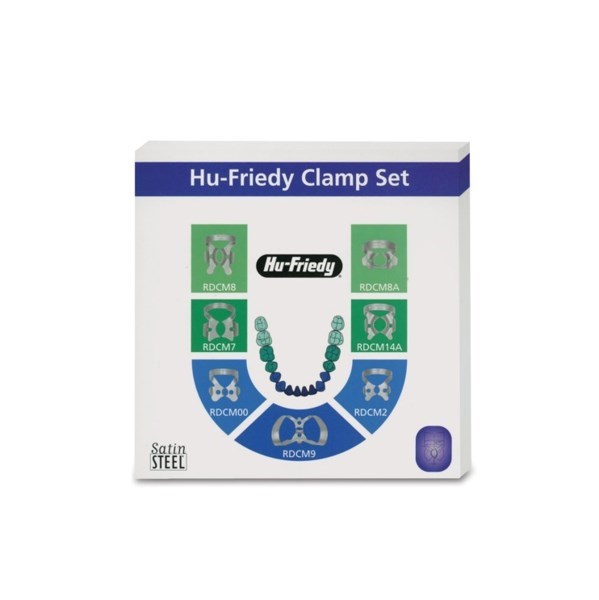 Стартовый набор кламмеров для работы с коффердамом от американской компании Hu-Friedy пользуется спросом у стоматологов. В набор входят 7 кламмеров для моляров, премоляров, фронтальных зубов, специфические модели для мелких и крупных моляров. Сатинированная сталь с антикоррозийным покрытием гарантирует длительный срок службы инструментов.
