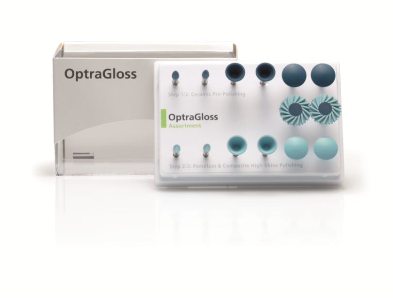 OptraGloss - универсальная полировочная система для внеротового и внутриротового применения. Подходит для создания зеркального блеска реставраций из композитных материалов и керамики. В состав набора входят насадки: