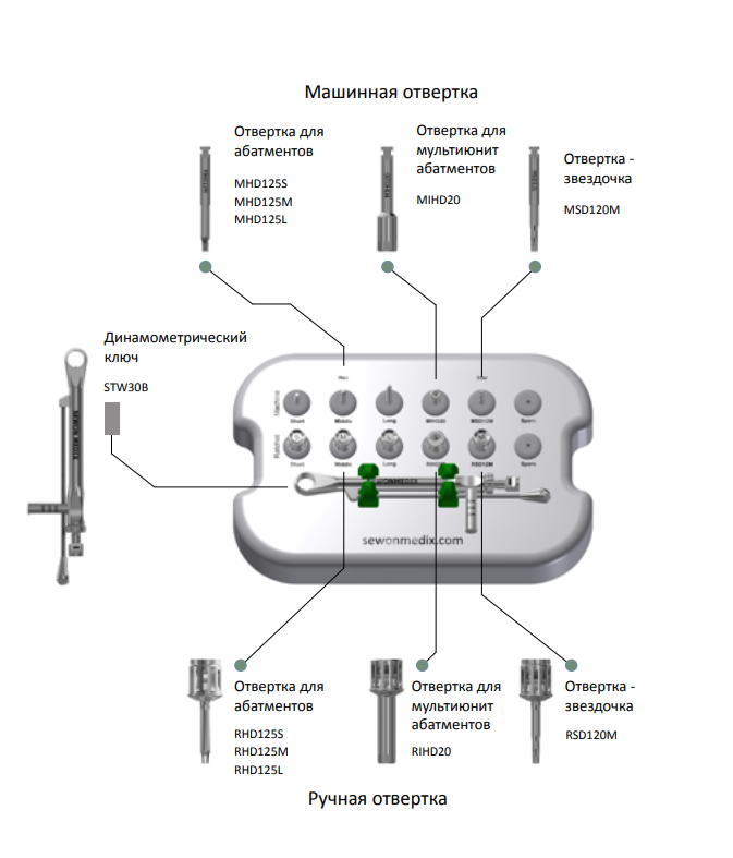 1. Отвертка для абатментов MHD125S, MHD125M, MHD125L