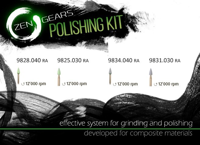 Набор полиров для работы с композитом Zen gears Kit (4 инструмента) в пластиковой упаковке.