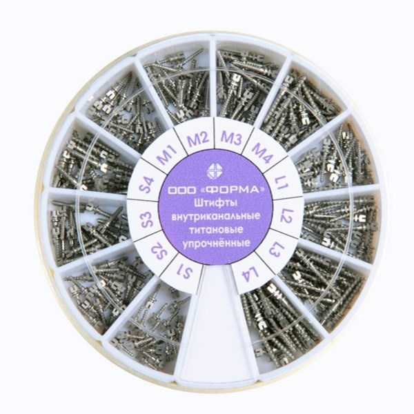 Набор внутриканальных титановых упрочненных штифтов от компании «Форма» поможет восстановить целостность зубов. Форма и размер помогают легко и быстро устанавливать дополнительные укрепляющие элементы при имплантации или реставрации.