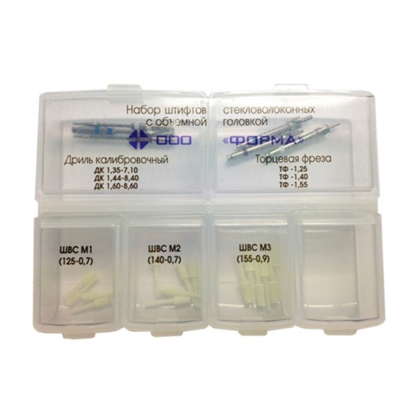 Набор стекловолоконных штифтов с объемной головой серии М и дрили от российского производителя «Форма» созданы для эффективной обработки зубного ряда для последующей имплантации. Дрили помогают расширять и калибровать корневые каналы. Форма и конструкция штифтов помогают надежно укреплять разрушенные стенки зуба.