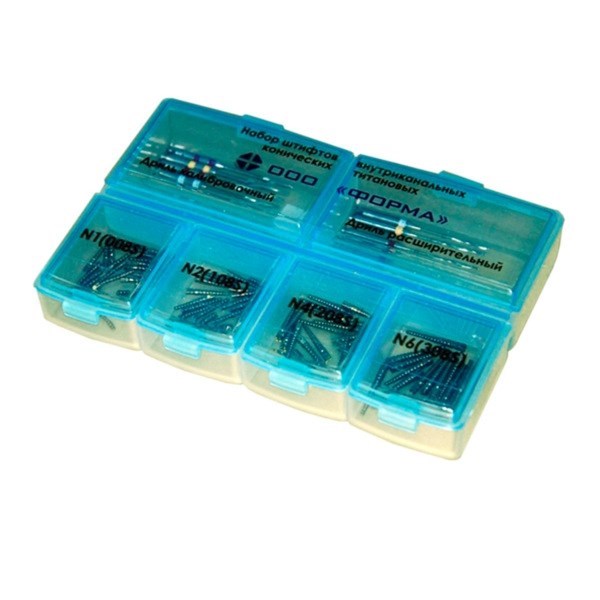 Набор титановых штифтов от компании «Форма» незаменимы в работе стоматолога. Готовая заводская конструкция позволяет быстро укрепить зуб даже при разрушении более 30%.