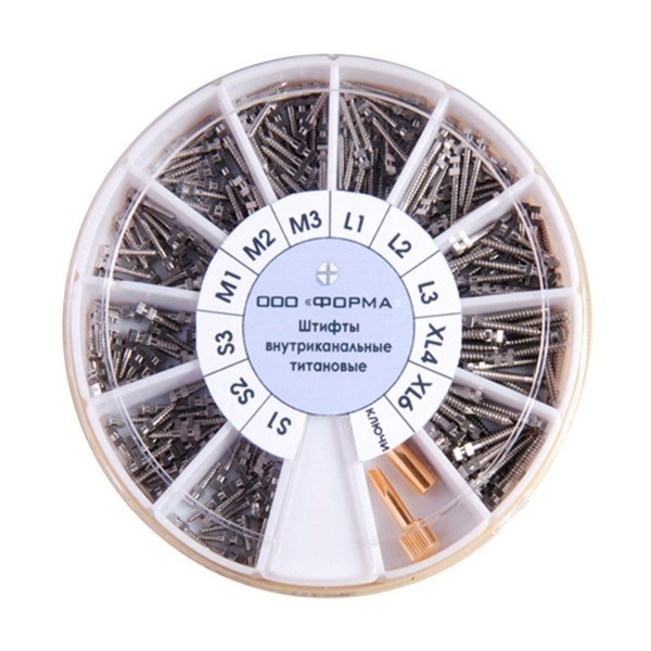 Набор титановых штифтов от компании «Форма» незаменимы в работе стоматолога. Готовая заводская конструкция позволяет быстро укрепить зуб даже при разрушении более 30%.