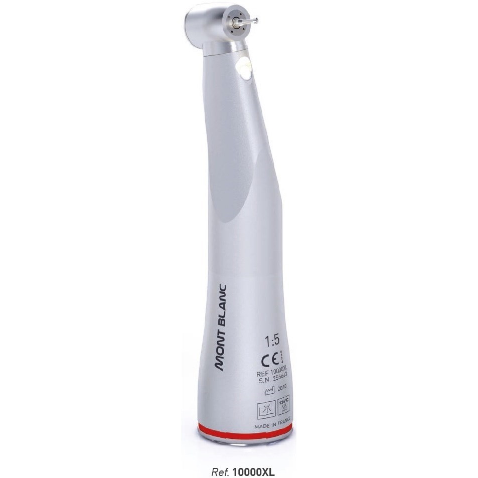 10000 XL наконечник угловой м/м Mont Blanс Evolution, повышающий 1:5, 4-х точечный спрей, фиброоптика, внутреннее охлаждение, керамический подшипник, маленькая головка 13,75 мм, нержавеющая сталь, неразборный, для инструментов диаметр 1,6 мм.