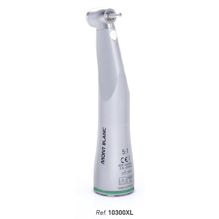 Наконечник угловой стоматологический Anthogyr Mont Blanc Evolution. Понижение скорости вращения 5:1, максимальная скорость вращения 8 000 об/мин, кварцевый световод, подсветка 25 000 лк. Кнопочная фиксация бора. Специальное шероховатое покрытие корпуса. Детали наконечника, изготовленные из титана и нержавеющей стали. Внутреннее охлаждение. Встроенный фильтр для очистки воды, подаваемой на спрей охлаждения. 4-х точечный спрей. Максимальный объем подачи воды для охлаждения 80 мл/мин. Керамические подшипники. Подлежит термической дезинфекции и стерилизации в автоклаве при температуре 135о С.