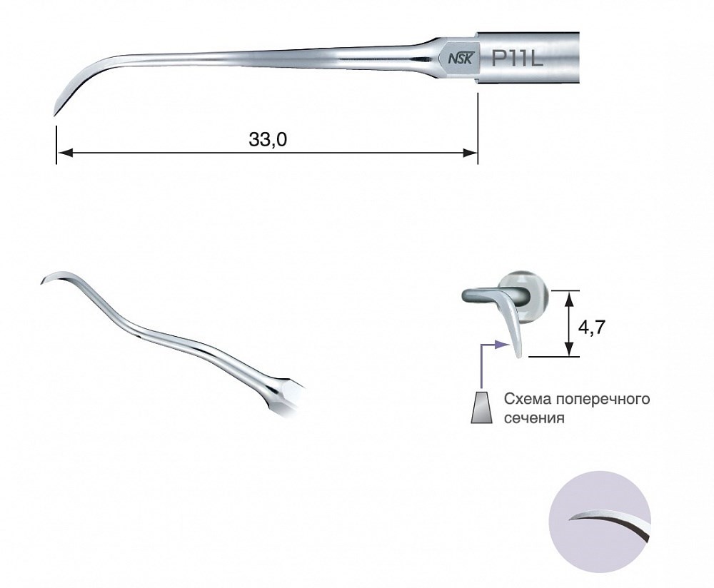 Насадка P11L от компании NSK с острой кромкой, с наклоном влево.