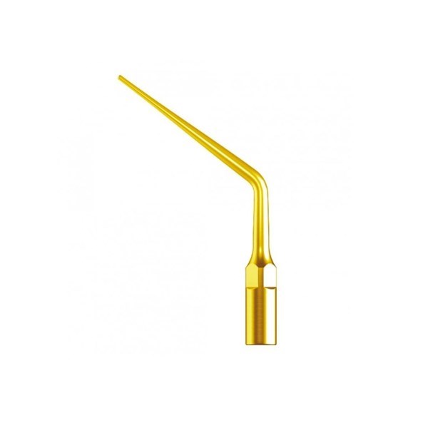 Эндодонтическая насадка E3T рекомендуется для растапливания гуттаперчи. Специальное нитрид-титановое напыление создает не только красивый вид изделия, но и повышает износостойкость инструмента. Перед установкой в канал погрузите инструмент в эвгенол. Слегка нажмите инструментом на гуттаперчевый штифт и активируйте инструмент, чтобы разогретая гуттаперча лучше обтурировала канал.