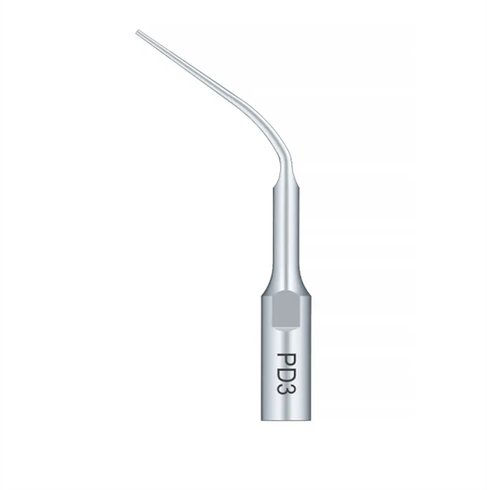 - PD3 пародонтологическая насадка для скалеров Woodpecker применяется для прикорневой очистки зубов и промывания глубоких десневых карманов.