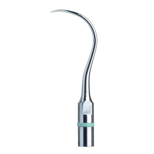 - TK2-1R, арт. F02161 — правосторонняя насадка, используется в средних и глубоких карманах с фуркациями (более 4 мм), (пародонт). Одна из основных пародонтологических насадок, позволяющих обрабатывать весь периметр шейки зубов и корней зубов в боковых секстантах зубных рядов (1, 3, 4, 6). Имеет круглое сечение малого радиуса, функциональный стержень имеет изгиб в левую сторону, адаптированный для обработки лингвальных поверхностей секстанта 6 и вестибулярных поверхностей секстанта 3. Во включенном состоянии может удалять небольшие конгломераты поддесневого камня. Имеет атравматичный закругленный кончик, на мощности 2-3 не разрушает периодонтальные прикрепления в области дна пародонтального кармана. Низкая амплитуда для лучшего тактильного контроля и атравматичного лечения