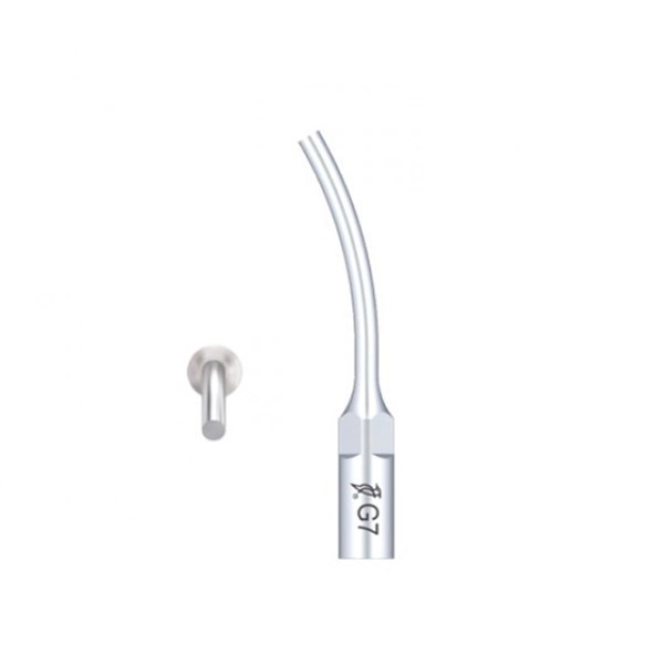 Насадка G7 применяется для удаления коронок. Приложите инструмент к поверхности коронки и включите подачу питания. Усиливайте давление до тех пор, пока не исчезнет звук вибрации и удерживайте в течение нескольких секунд. Совместима со скалерами Woodpecker/EMS.