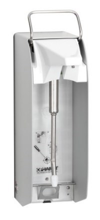 Настенный бесконтактный дозатор, 3908393 (Bbraun). Корпус дозатора изготовлен из анодированного алюминия, рычаг (укороченный) и помпа из нержавеющей стали.