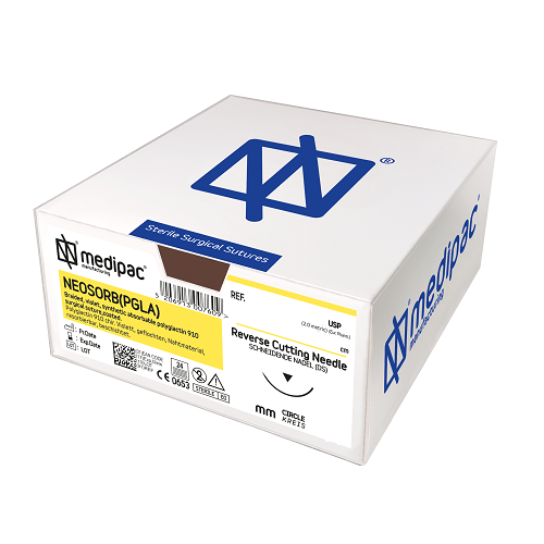 Шовный материал (нить) Neosorb, диаметр 4/0 длина 45 см, с иглой 16 мм, изгиб 3/8 окружности, реверсивно режущая ( обратно-режущая игла ), цена указана за ОДНУ нить.