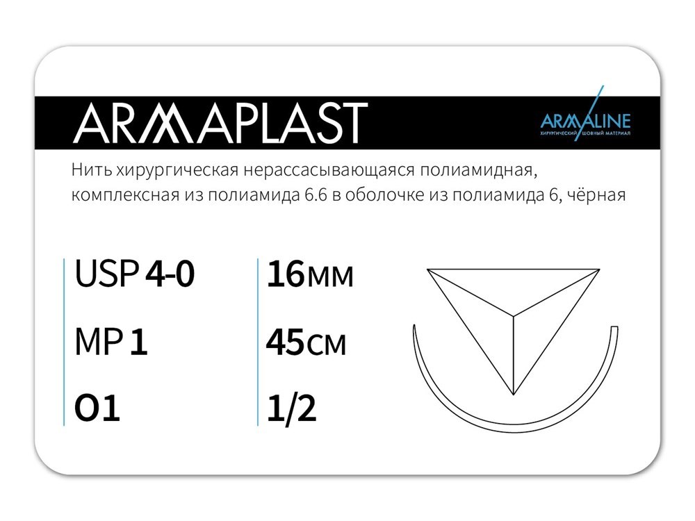 Нерассасывающаяся нитьARMAPLAST/Армапласт (4-0) 45 см - материал хирургический шовный стерильный с атравматической обратно-режущей иглой
