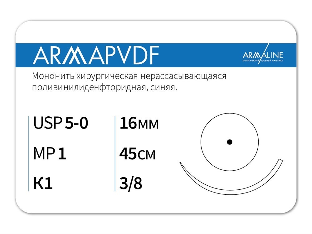Нерассасывающаяся нитьARMAPVDF/Армапвдф (5-0) 45 см - материал хирургический шовный стерильный с атравматической колющей иглой