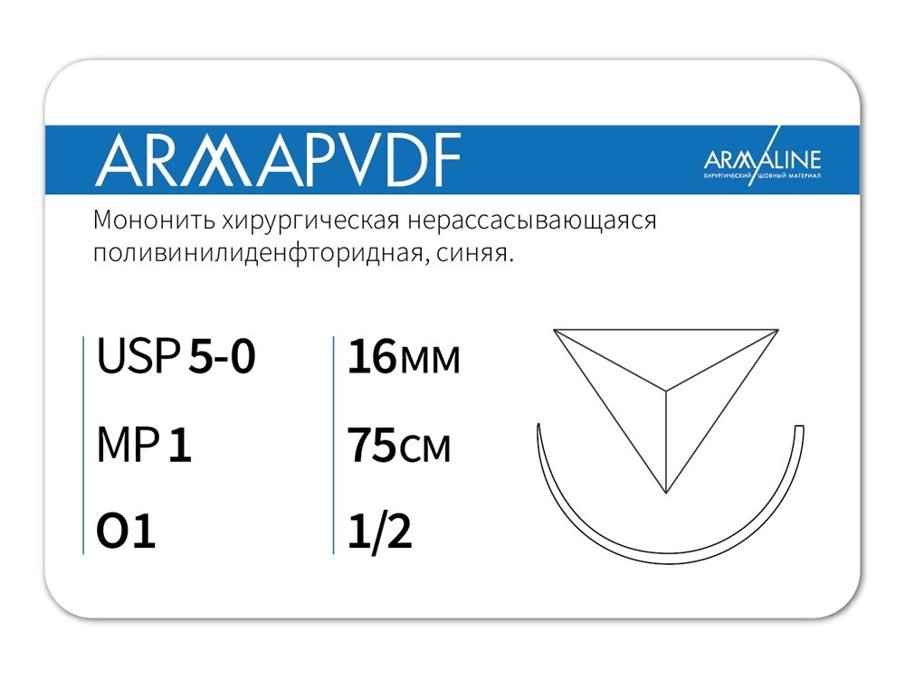 Нерассасывающаяся нитьARMAPVDF/Армапвдф (5-0) 75 см - материал хирургический шовный стерильный с атравматической обратно-режущей иглой
