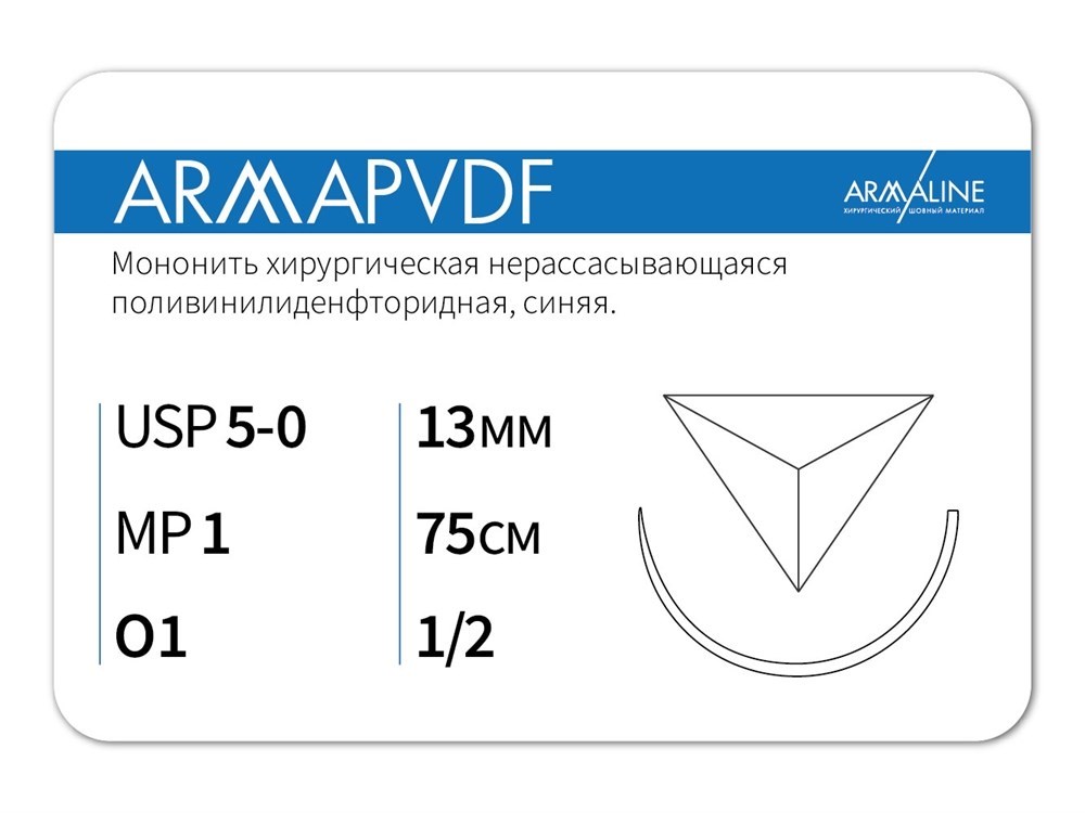 Нерассасывающаяся нитьARMAPVDF/Армапвдф (5-0) 75 см - материал хирургический шовный стерильный с атравматической обратно-режущей иглой