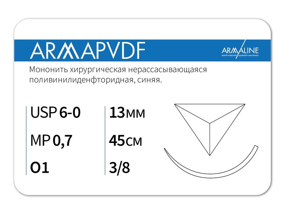 Нерассасывающаяся нитьARMAPVDF/Армапвдф (6-0) 45 см - материал хирургический шовный стерильный с атравматической обратно-режущей иглой