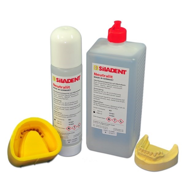 Универсальная жидкость Neutralit используется для нейтрализации обезжиривания поверхности силикона, воска и пластмассы. Средство не образовывает пленки и совместимо со всеми оттискными и дублирующими материалами на основе силикона. Не должен использоваться с альгинатами, гидроколлоидами и полиэфирами!