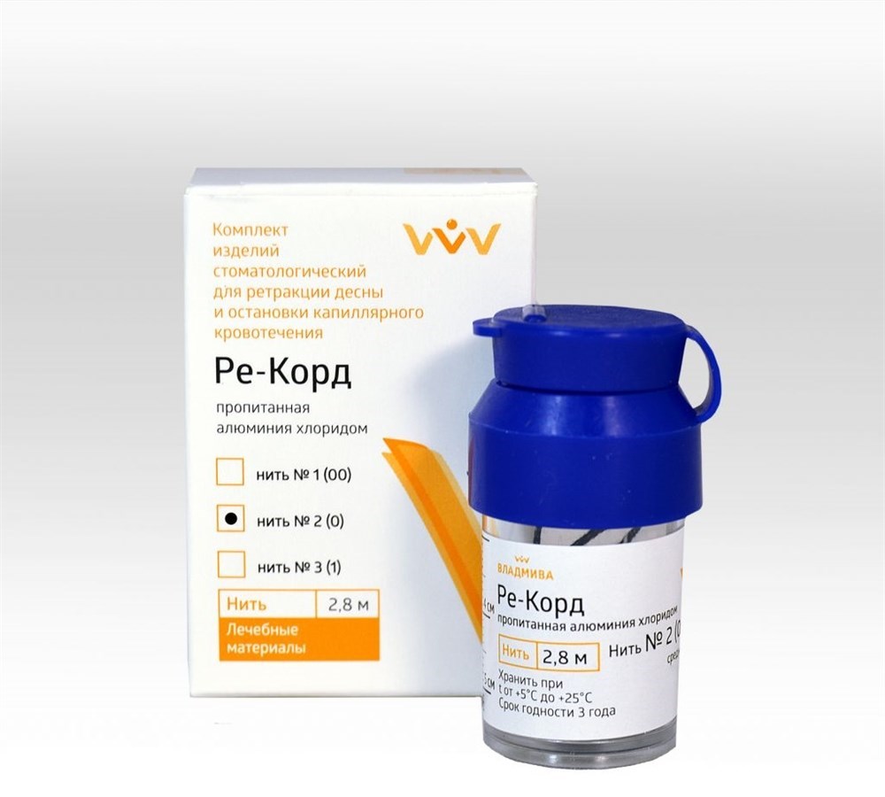 Пропитанная нить «Ре-Корд» представляет собой готовую к применению форму: плетеная хлопчатобумажная нить, армированная полиэфирным волокном, обработанная по специальной технологии контролируемой дозой алюминия хлорида (нить синего цвета)