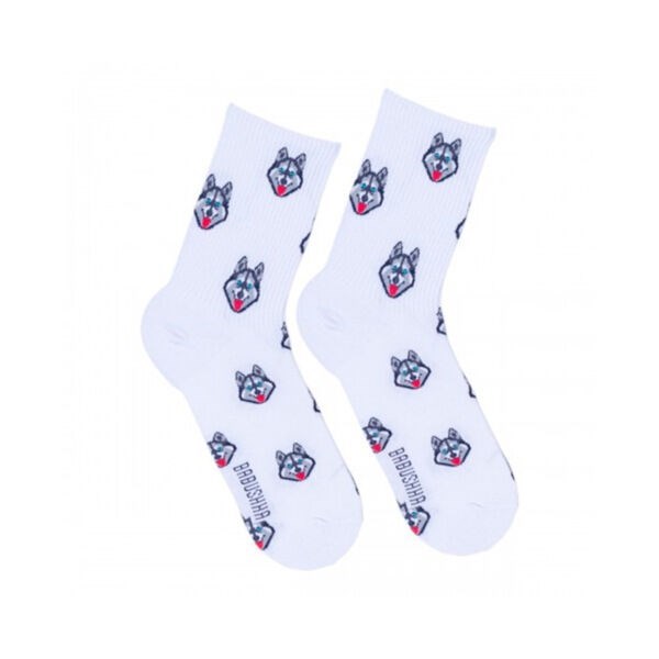 Спортивные носки с хаски Babushka. Сделаны из натурального хлопка высокого качества. Пятка и мысок усилены, что продлевает срок службы носка.