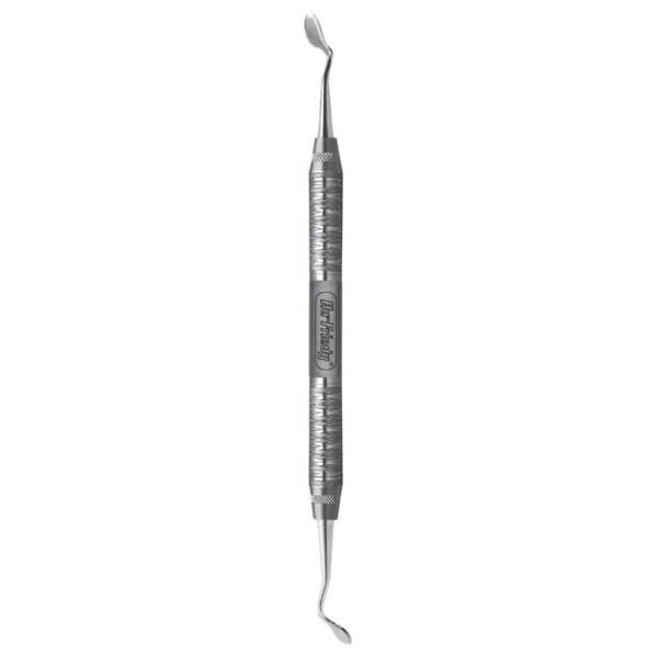 Двусторонний пародонтологический нож серии Goldman-Fox с гладкой ручкой Kotschy от американского бренда Hu-Friedy используется для операций на альвеолярном гребне. Рабочая часть отведена в сторону, что позволяет использовать на труднодоступных участках ротовой полости.