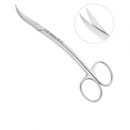 Ножницы HLW 19-8 La Grange, двойной изгиб, зубчатая поверность, 13.5 см произведены торговой марки HLW Dental Instruments, предназначены для коррекции мягких тканей в ротовой полости. Благодаря двойному изгибу по плоскости инструмент легко ввести глубоко в полость рта и без проблем провести операцию по разрезанию мягких тканей. Зубчатые режущие грани на поверхности одного из лезвий инструмента предотвращают скольжение ножниц по плоскости мягких тканей. Рабочая часть инструмента стандартной треугольной формы с тонкими, острыми, режущими краями, имеющими самозатачивающийся эффект за счет того, что лезвия равномерно подводятся друг к другу, смыкаясь в одной точке. Ручки инструмента имеют стандартные кольцевые хваты для указательного и большого пальцев. Оптимальное соотношение длины ручек к рабочей части ножниц существенно снижает нагрузку на кисть, что способствует коррекции мягких тканей в ротовой полости.