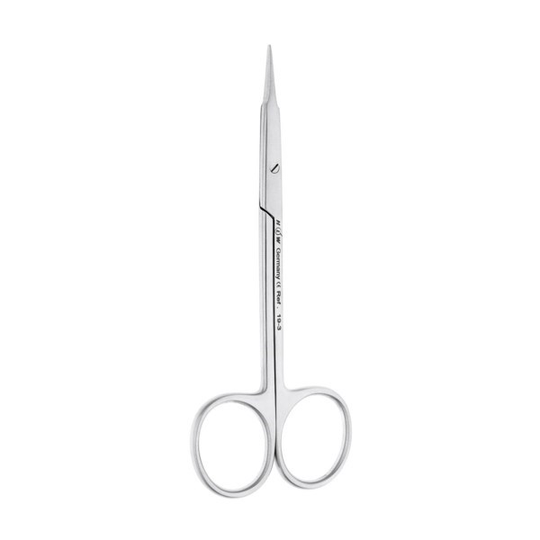 Ножницы прямые для мягких тканей конструкции СТИВЕНСА. Имеют симметричные заостренные рабочие части, которые истончаются к вершине. Серейторная заточка режущей поверхности препятствует эффекту размозжения тканей и уменьшает шанс выскальзывания, имеет самозатачивающийся эффект. Держатели имеют стандартную кольцевую форму. Общая длина инструмента не более 11,5 см.