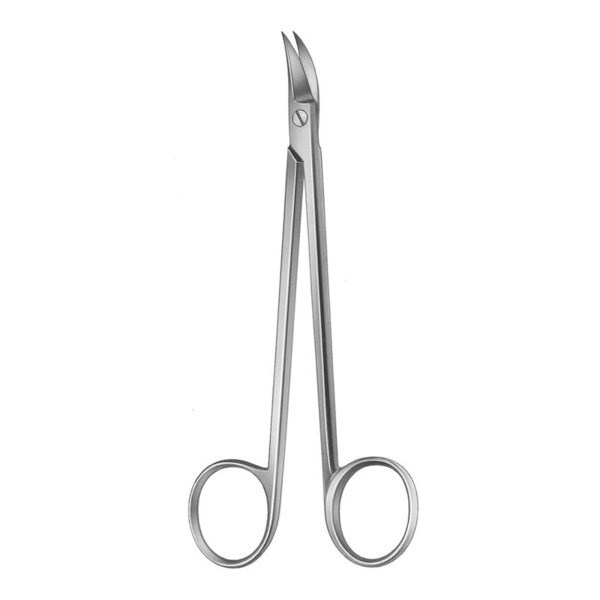 Ножницы препаровальные, по QUINBY, изогнутые, длина 130 мм, DO218R, B.Braun (Aesculap, Германия) изготовлены из нержавеющей стали и имеют короткую рукоятку с лопастями, расположенными под углом вверх. Надежная конструкция и острота режущего края, сохраняемая в течение всего срока эксплуатации, позволяет использовать ножницы длительное время. Инструмент предназначен для рассечения тканей, анатомических структур, лигатур и иных целей.