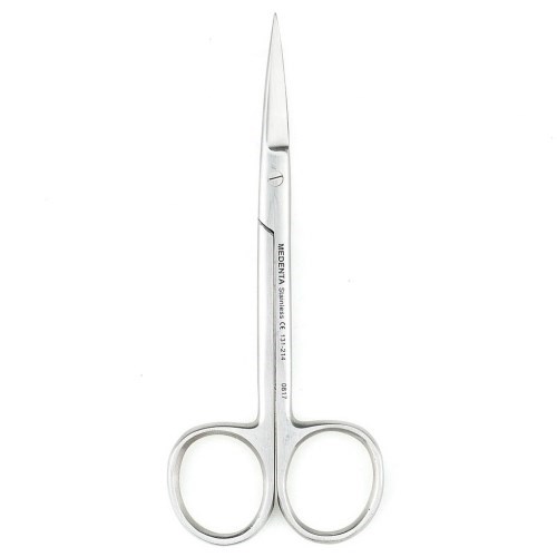 Ножницы шарнирного типа конструктивно состоят из лезвий, шарнирного замка, рукояток и колец захвата.Шарнирные ножницы в зависимости от целевого предназначения могут иметь следующие формы лезвий:- Прямые.- Изогнутые по плоскости.- Изогнутые по ребру.Сочетания концов лезвий ножниц могут быть разными:- Ножницы остроконечные (оба конца имеют угловую форму).- Ножницы тупоконечные (оба конца закруглены).- Ножницы комбинированные остротупоконечные (один конец острый, другой - тупой).- Ножницы пуговчатые (один или оба конца поясниц имеют соответствующее утолщение на конце).Ножницы шарнирного типа действуют по принципу двух клиньев. Они плотно соприкасаются лезвиями, в момент прохождения их друг против друга в точке резания. Лезвия и рукоятки ножниц перекрещиваются в точке вращения и образуют систему встречных треугольников. Соприкосновение и разведение режущих кромок обеспечивается движением рукояток, поэтому амплитуды движений рукояток и лезвий совпадают.В то же время соотношение длин лезвий и рукояток обеспечивают развитие усилий по принципу рычага:- чем больше длина рукояток превышает длину лезвий, тем меньше усилий необходимо прикладывать для рассечения тканей- чем длиннее лезвие, тем больше усилий необходимо прикладывать для рассечения тканей.Хирургические ножницы имеют два лезвия, которые при встречном движении рассекают ткани.Угол заточки лезвий ножниц, как правило, находится в пределах 40°.Заточку производят только с наружной стороны лезвий.На ручках инструментов вытравлены серийные артикулы для идентификации. Все инструменты имеют привлекательную, современную (Satin finishing), практичную, матированную и антибликовую обработку поверхностей, что делает использование инструментов более долговечным и позволяет придерживаться высоких стандартов стерилизации.НазначениеНожницы прямые Wagner. Предназначены для использования в хирургии и парадонтологии.ПоказанияНожницы применяются для рассечения швов, бинтов, мягких тканей полости рта и парадонта.ПрименениеНожницы бывают многочисленных форм лезвий и размеров. Выбор инструмента зависит от предпочтений врача и клинической необходимости.СоставХирургические иструменты изготовлены из нержавеющей стали AISI 420 и ее составных элементов, в соответствии с нижеуказанным:Химический состав для стали AISI 420 (ASTM стандарт)C - (0,16 - 0,25) %Mn (Max) - 1,00 %P (Max) - 0,04 %S (Max) - 0,03 %Si - 1,00 %Cr - (12,00 - 14,00) %Ni (Max) - 1,00 %СТЕРИЛИЗАЦИЯСтоматологические инструменты должны стерилизоваться методом автоклавирования в специальных, предназначенных для этого стерилизационных пакетах. Для предотвращения перекрестной инфекции необходимо соблюдать следующие этапы стерилизации:Дезинфекция:Используйте растворы с нейтральным PH не содержащие хлора.Продолжительность дезинфекции согласно инструкции производителя.Тщательно промойте дистиллированной водой после дезинфекцииОчистка:Механическая очистка и использование ультразвуковой ванны.Промывка дистиллированной водой.Инструмент должен быть тщательно высушен перед укладкой в пакет.Упаковка каждого инструмента производится в отдельные стерилизационные пакеты.Автоклавирование и хранение:Автоклавирование при температуре 134°С с высушиванием.Хранить в стерилизационных пакетах в хирургических шкафах 5°С - 40°С, влажность < 80%.