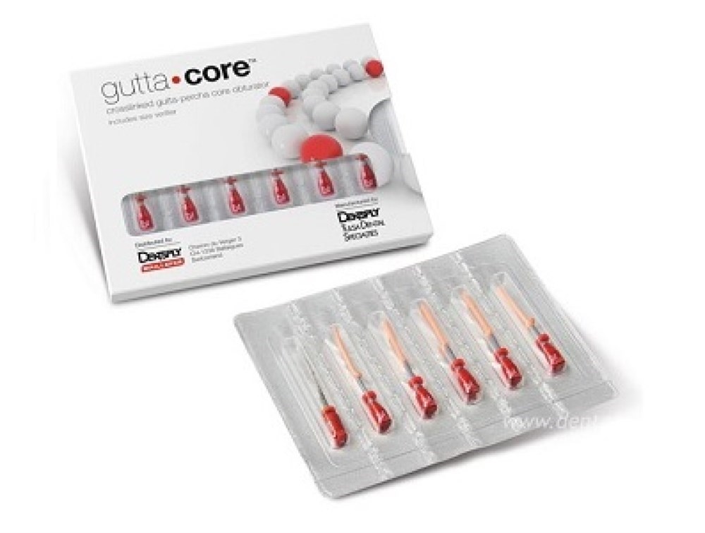 GuttaCore - обтуратор из поперечно-сшитой гуттаперчи N30, 5 штук и 1 верификатор. Отсутствует пластиковый носитель, что обеспечивает простоту изготовления штифтовой конструкции и легкость перелечивания и позволяет исполнить 3D обтурацию на узких и длинных каналах.того времени достаточно, чтобы произвести качественную герметизацию канала.