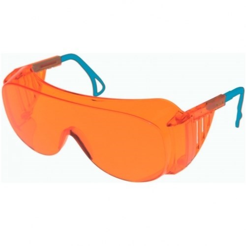 Очки универсального примениения с прозрачным защитныс стекломоранжнвого цвета из оптически прозхрачного материала Plexiglas.