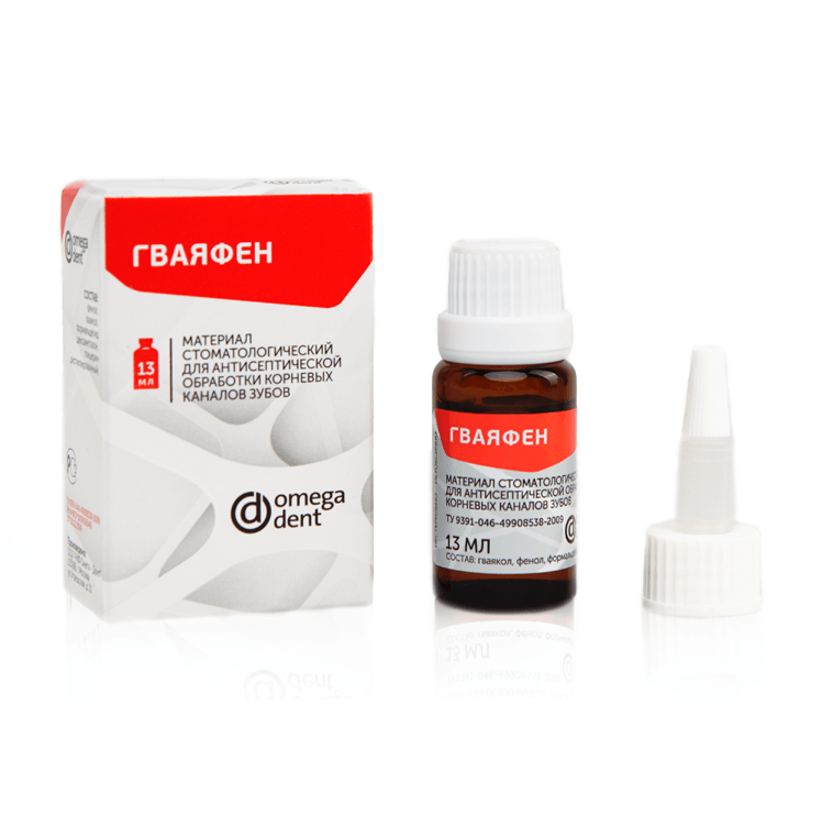 Жидкость "ГВАЯФЕН", состоящая из сильнодействующих бактерицидных и кортикостероидных веществ, обладает совокупностью качеств особенно полезных для антисептической обработки каналов и кариозных полостей, широко используется в настоящее время при эндодонтических вмешательствах.