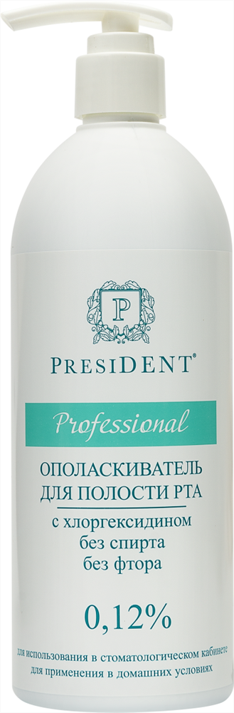Ополаскиватель PRESIDENT Professional с хлоргексидином 0,12%, 500 мл с удобным носиком-дозатором предупреждает образование зубного налета, подавляет рост бактерий, обеспечивает профилактику осложнений после стоматологических вмешательств и защищает проблемные десны. Показания к применению: для профилактики и борьбы с воспалением десен и слизистой полости рта. Не содержит спирт и фтор.