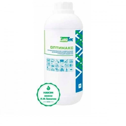 Оптимакс – универсальное концентрированное дезинфицирующее средство. Эффективно против вирулентных клинических штаммов микобактерии туберкулеза с различной степенью резистентности (по результатам ЦНИИ туберкулеза РАМН). Специальный состав препятствует развитию резистентности микрофлоры благодаря чему средство не требует периодической замены. При этом, Оптимакс можно использовать на объектах общественного питания, включая пищеблоки лечебно-профилактических учреждений (рекомендуется применять для безопасной и экономичной дезинфекции пищевых яиц). Средство не повреждает обрабатываемые поверхности, не обесцвечивает ткани, не фиксирует органические загрязнения, не вызывает помутнения оптики и разрушения клеевых соединений, в том числе термолабильных инструментов. Свойства препарата позволяют совмещать в одном процессе мытье, дезинвазию, дезинфекцию и дезодорирование обрабатываемых поверхностей и объектов.Оптимакс не теряет эффективности при контакте с остаточными количествами мыла и анионных ПАВ.
