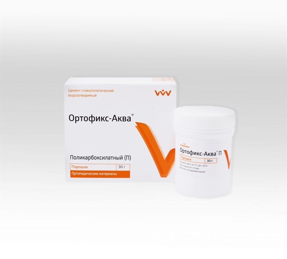 «Ортофикс-Аква» ПОЛИКАРБОКСИЛАТНЫЙ представляет собой механическую смесь модифицированной окиси цинка и сухой полиакриловой кислоты. «Ортофикс-Аква» поликарбоксилатный обладает хорошей адгезией к дентину, эмали и к основным конструкционным стоматологическим материалам, минимальной растворимостью и усадкой, высокой прочностью. Порошок цемента «Ортофикс-Аква» поликарбоксилатный легко смешивается с водой до получения необходимой консистенции. При фиксации коронок и мостовидных протезов не вызывает болевых ощущений у пациента.
