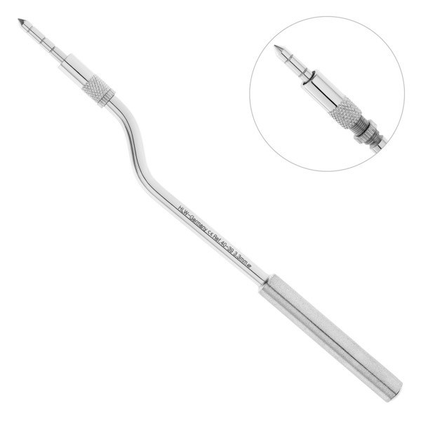 Остеотом с ограничителем, острый кончик, 3,3 мм, HLW (Германия) предназначен для конденсации мягкой костной ткани в месте внедрения имплантата и закрытого синус-лифтинга. На конце рабочей части стоматологического инструмента расположена градуировочная шкала для контроля глубины введения инструмента в костную основу. Рабочая часть стоматологического инструмента выполнена в виде цилиндра с заостренным окончанием и муфтой для ограничения движения остеотома. Такая конструкция инструмента снижает риск повреждения дна гайморовой пазухи.