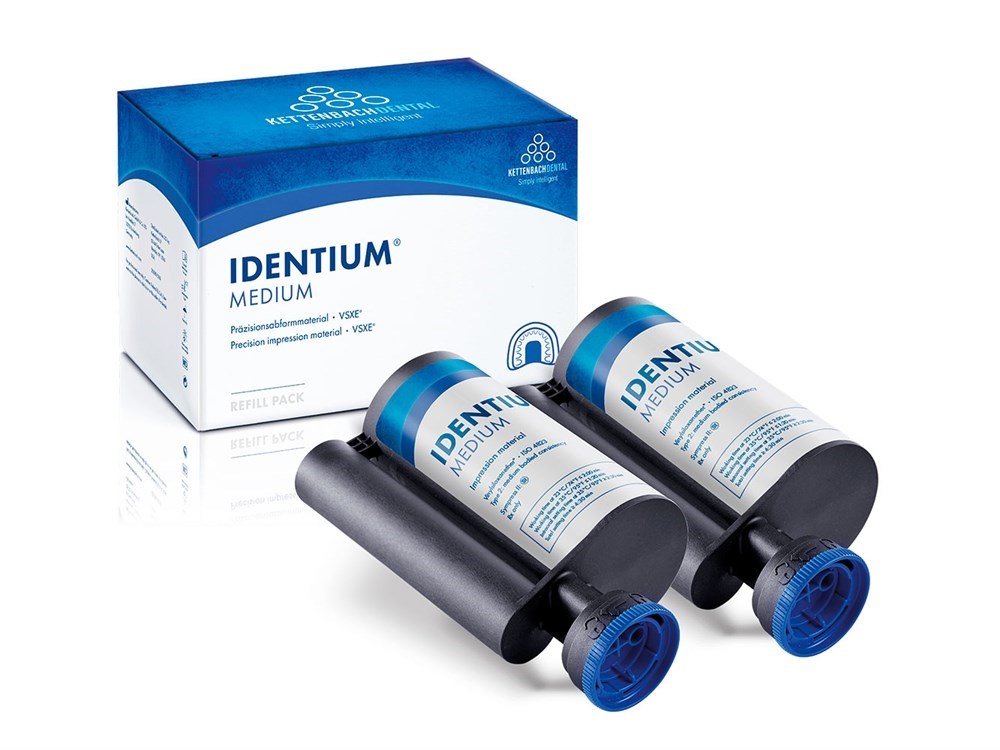 Identium Medium - среднетекучий монофазный прецизионный материал из винилсилоксанэфира, который ввиду своей высокой конечной твердости особенно хорош для оттисков в имплантологии.